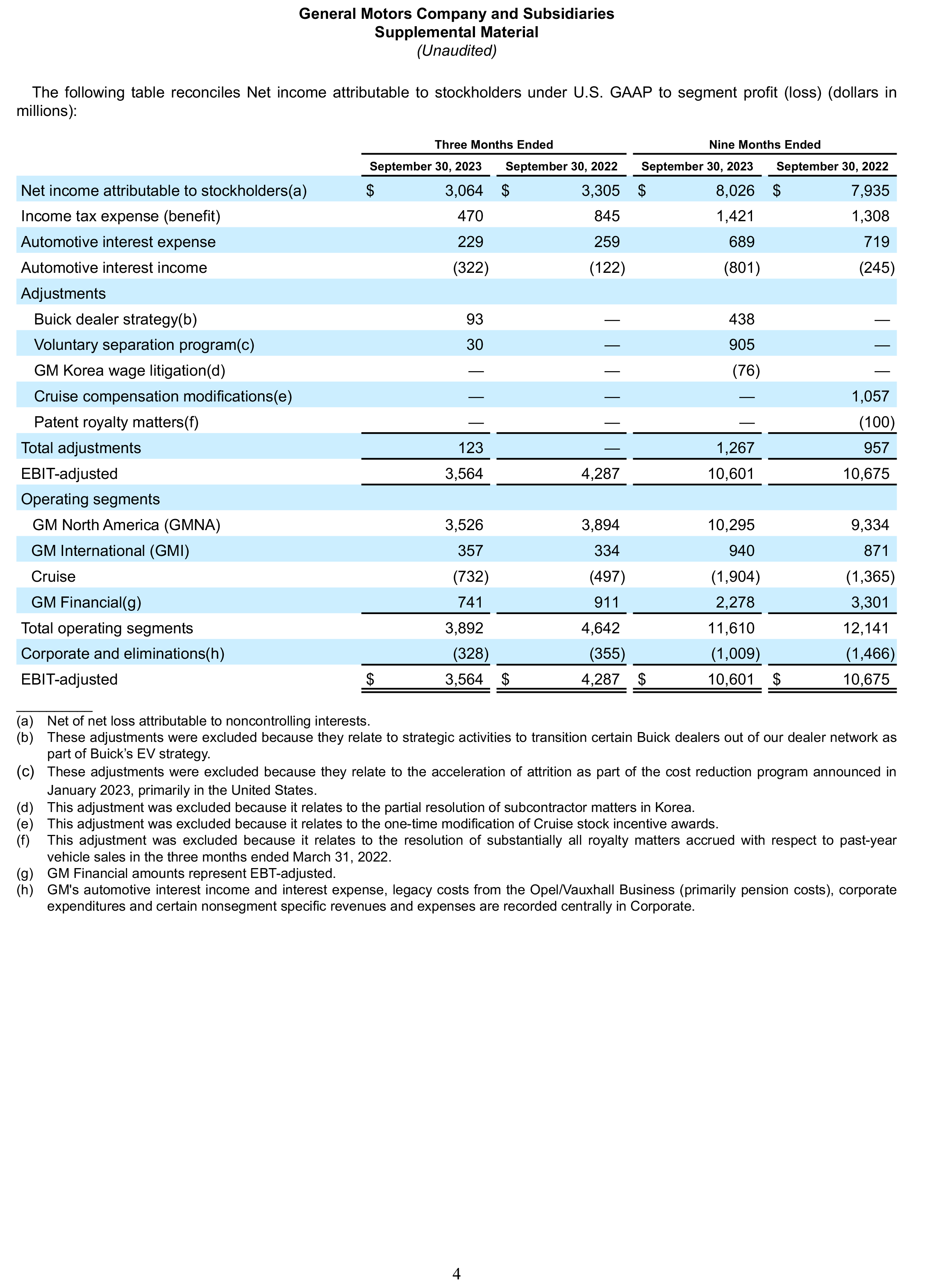 | GMNA EBIT-adjusted | $ | 3,526 | $ | 3,894 | $ | (368) | (9.5) | % | ||||||||||||