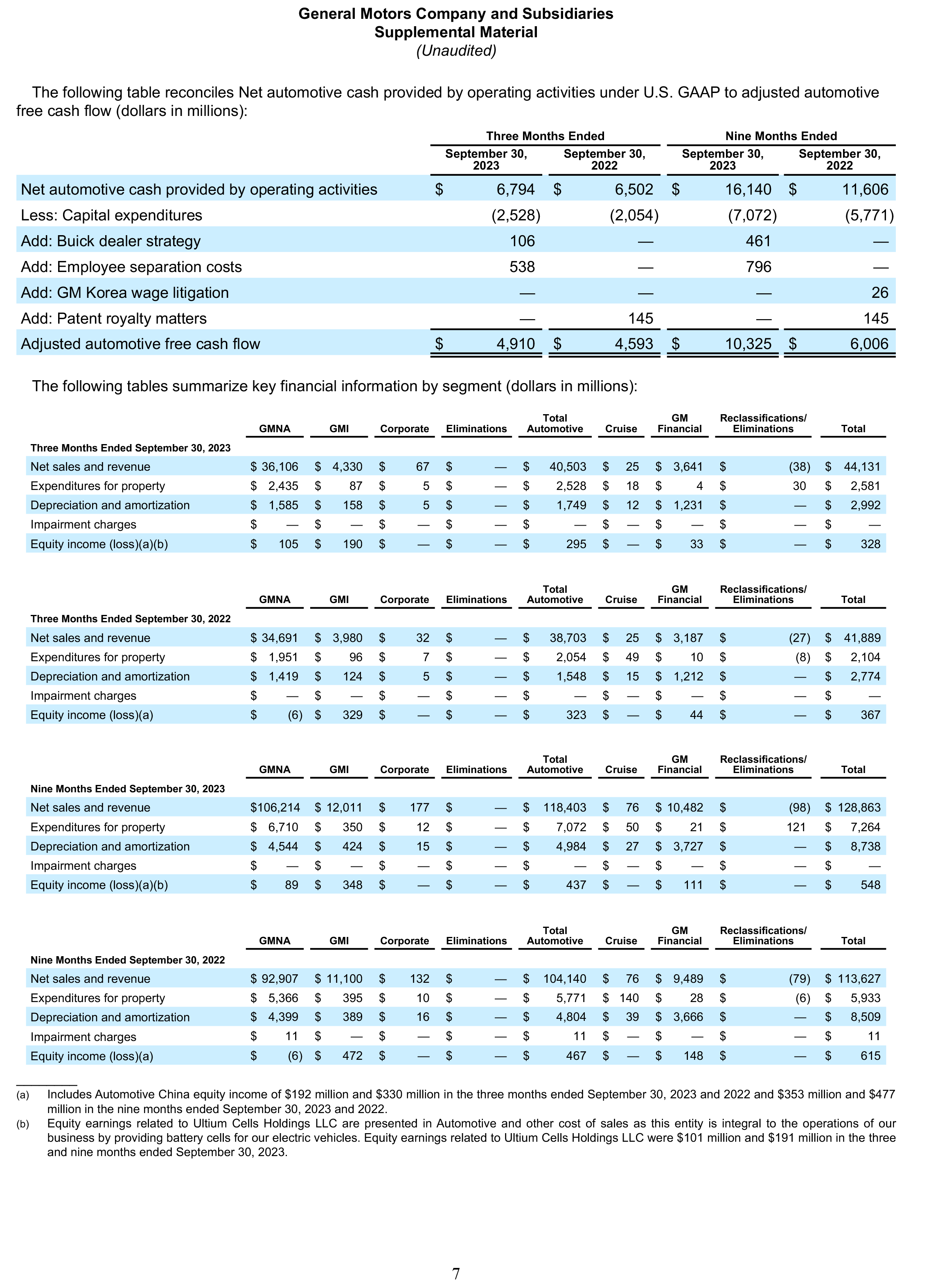 General Motors Company and Subsidiaries Supplemental Material1(Unaudited)
