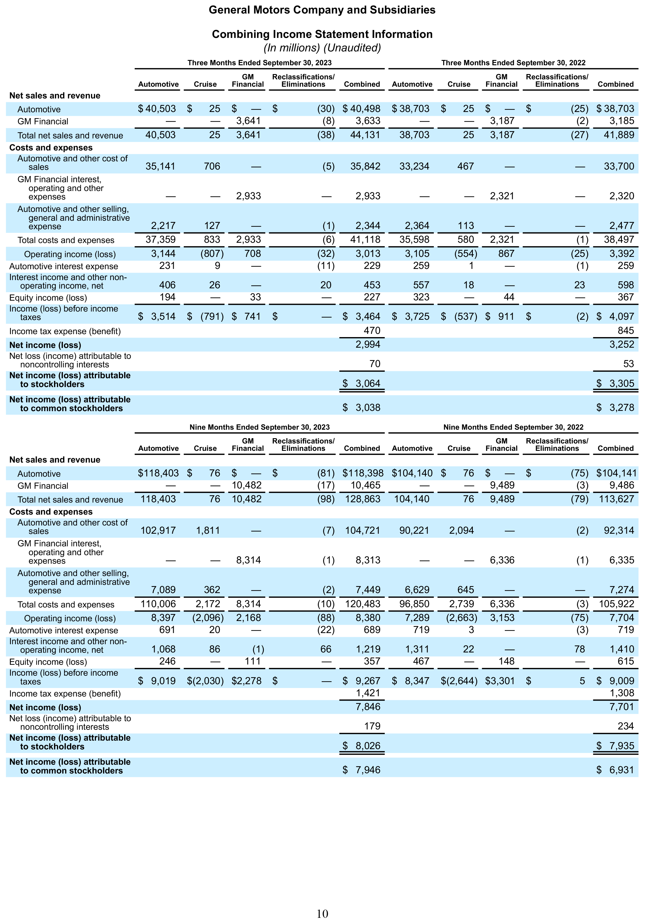 DETROIT – General Motors Co. (NYSE: GM) today reported third-quarter 2023 revenue of $44.1 billion, net income attributable to stockholders of $3.1 billion and EBIT-adjusted of $3.6 billion.